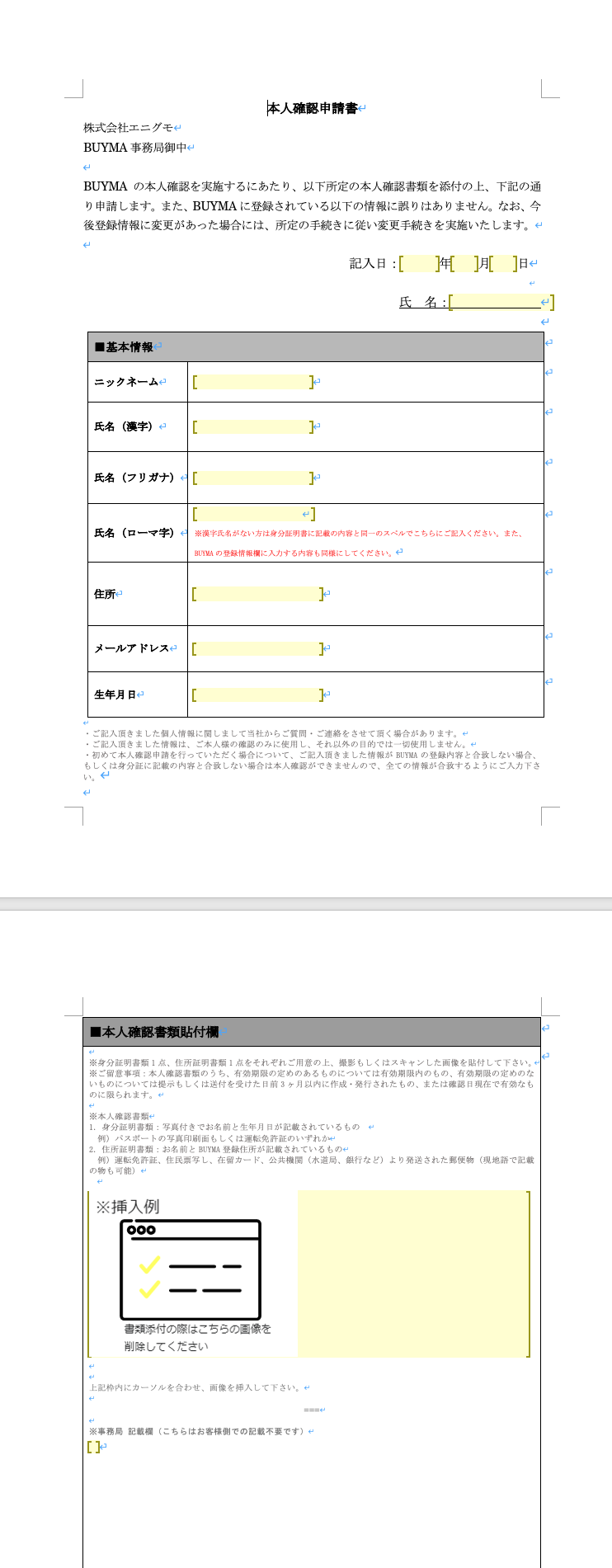 - 성명(로마자/氏名 ローマ字): 여권과 동일한 영문 성명 (BUYMA 회원 정보와 일치해야 함)