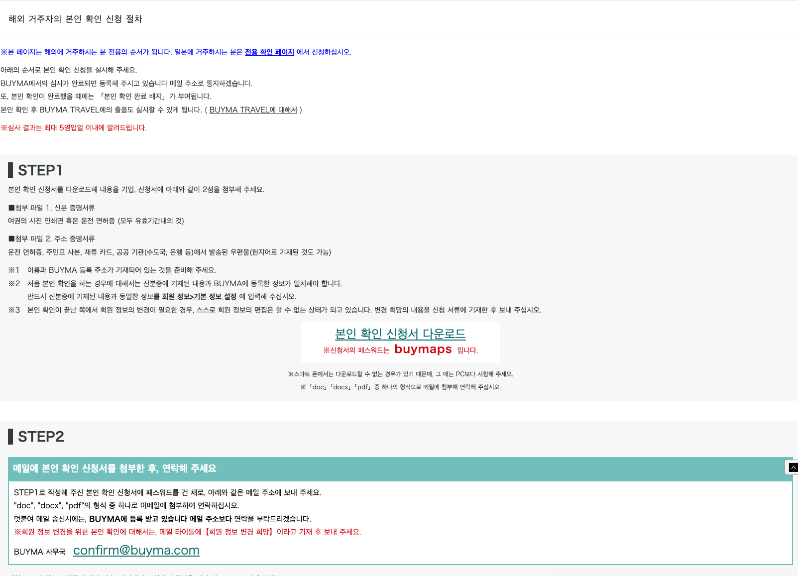 - 완료 혜택: 본인 확인이 완료되면 프로필에 **'본인 확인 완료 배지'**가 부여되며, BUYMA TRAVEL 등 추가 서비스 이용이 가능해집니다.